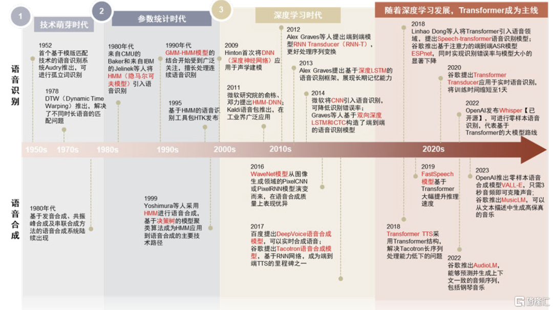 图表:深度学习驱动当前语音技术快速发展,Transformer成为主流路线
