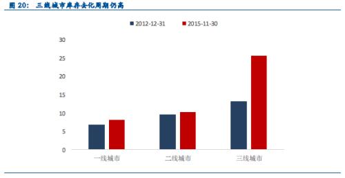 其次,从去化周期上看,如今的商品房库存形式也不及2012年末乐观。