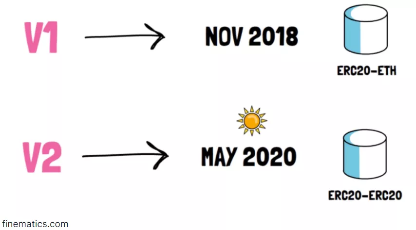 AMMs的引入来自于Uniswap,该协议允许在以太坊之上以无许可的方式列出交易对和进行代币交易。最初在Uniswap V1中,池子是针对ETH创建的,所以所有的交换都是在结构为这样的池子中进行的。ERC20/ETH。Uniswap V2于2020年5月亮相,允许为ERC20/ERC20代币之间的交易建立池子,而不仅仅是ERC20/ETH对。今天的许多AMM都是Uniswap V2代码库的分支,在UI/UX和其他调整方面略有不同,例如SushiSwap实施的MasterChef奖励合约。当提到V2 AMM、V2风格时,它只是指Uniswap所流行的恒定产品库结构。