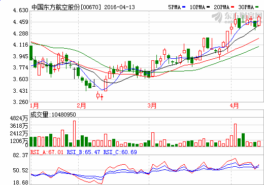 东方航空2016年4月13日晚间发布一季度业绩预告,受需求增长、低油价和成本优化等因素影响,预计一季度净利同比增长60%-70%。